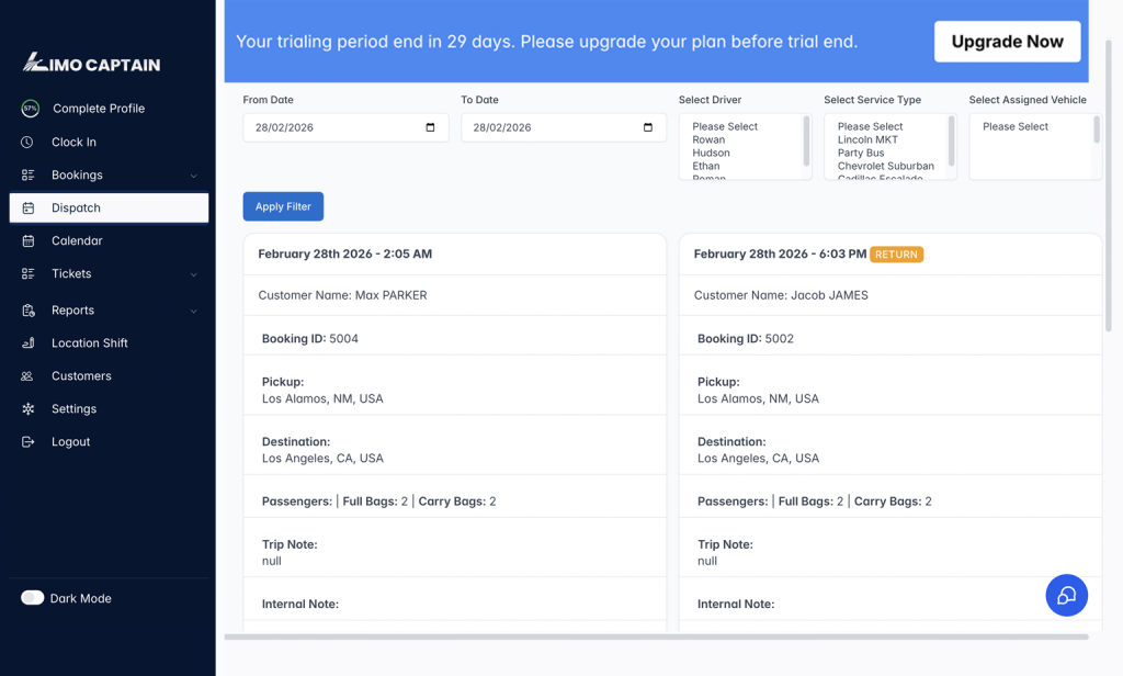 Limo Captain is an all-in-one platform that helps car rental, limo, and transportation businesses manage bookings, dispatch, drivers, vehicles, payments, and customers from one system.